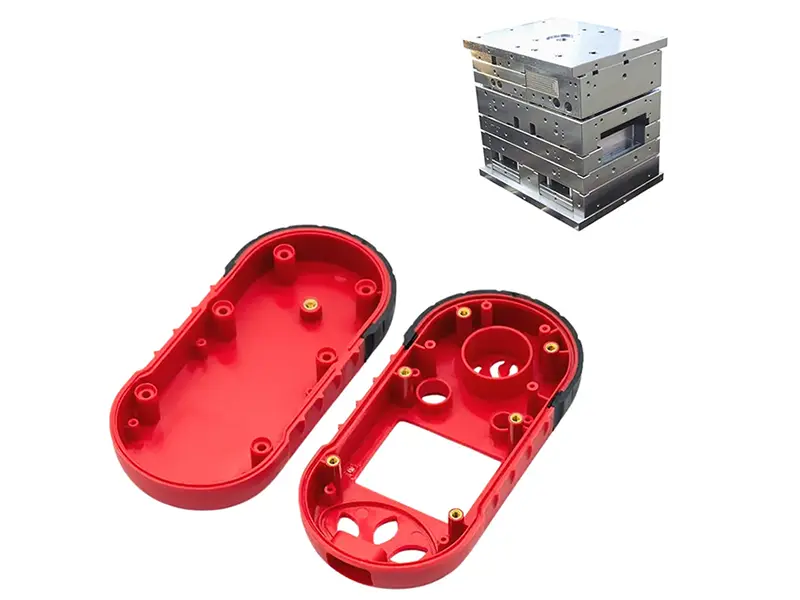 A multi-step process that molds a second material (often soft elastomer) over a rigid base part, adding grip, cushioning, insulation, and improved durability.